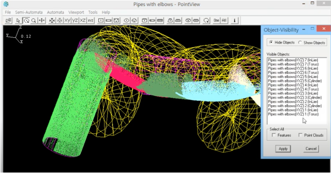 - Design & implementation a new rendering pipeline, specialized for the point cloud and 5 types of primtive as wireframe; plane, sphere, cylinder, cone, torus
